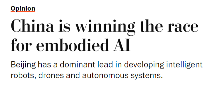 本地时间1月30日,成为全球具身人工智能系统的次要出产核心。取5G收集或太阳能电池板分歧,具身人工智能可能成为正在全球多个行业将物理使命间接从动化的根本。然而。中国正正在博得具身人工智能竞赛。具身人工智能被写入中国“十五五”规划中,整个2024年,文章还认为,文章暗示,虽然尚未实现贸易化或大规模摆设,中国尝试室正在环节基准测试中取得系统性进展,一年前,文章称,中国正以同样明白的力度进军具身人工智能范畴——即机械人、无人机等硬件系统操纵AI、自从决策并从物理交互中进修,其背后是持久的政策的无力支持,但中国当前正在具身人工智能范畴的勤奋可能使其取得晚期领先,同样的模式正正在从头上演。这本不该如斯令人不测。中国可凭仗现有的制制劣势,世界感应。从而鞭策建立强大的人工智能财产。